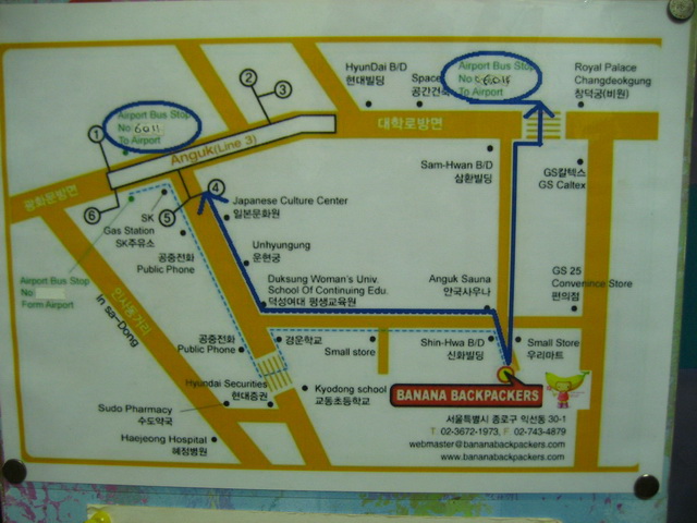 สำหรับทริปนี้ ผมจอง Banana Backpacker ไว้ ผมก็ศึกษามาเป็นอย่างดีละ ว่าต้องนั่งสาย 6011 แต่ปรากฎว่า ผมก็ไม่ทราบครับว่ารถสายนี้เที่ยวสุดท้าย ออกจากสนามบินอินชอน เวลา 22.30 น. !!!!